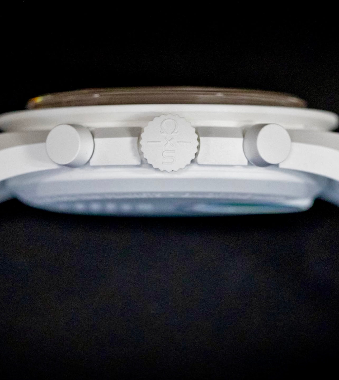 The “Cold Moon” edition features a 42 mm white Bioceramic case, matching crown and pushers, and a white rubber strap with VELCRO® closure. Lightweight, durable, and instantly recognizable for its smooth matte finish, Bioceramic gives the watch its distinctive MoonSwatch feel. A box-shaped biosourced crystal with an etched center “S” completes the authentic Swatch detailing.